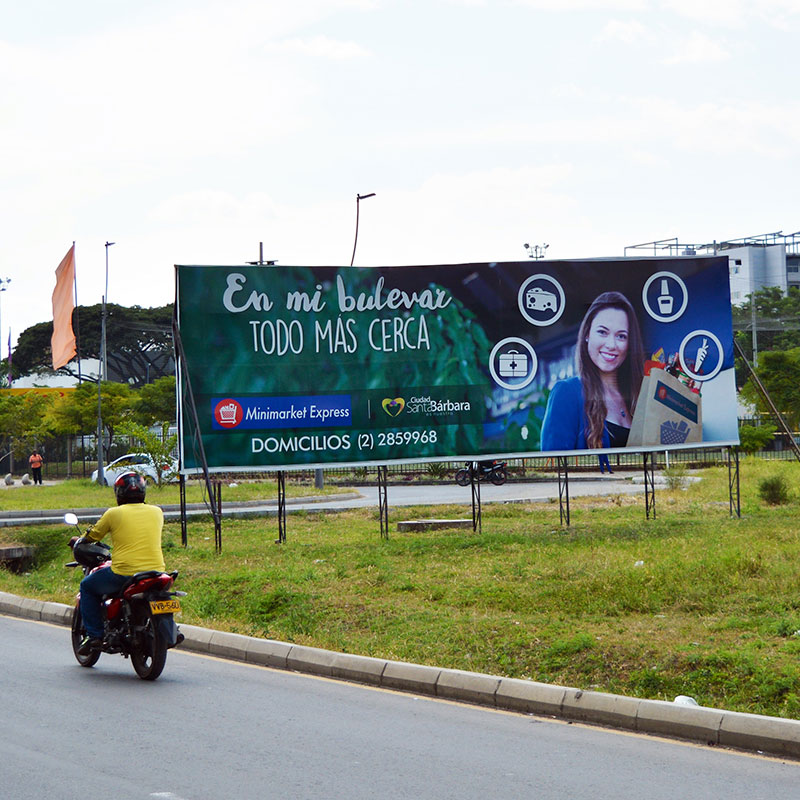 Tenemos ubicados espacios publicitarios en una zona de alto tráfico, cerca al Centro Comercial Llanogrande, para que impacte y promocione su marca.